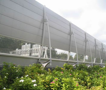 隔音屏障主要用于高速公路、高架复合道路、城市轻轨地铁等交通市政设施中的隔声降噪、控制交通噪声对附近城市区域的影响,也可用于工厂和其它噪声源的隔声降噪。