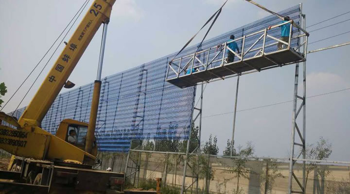 防风抑尘网也称作挡风墙,防风网,防尘网。防风抑尘网是利用空气动力学原理,按照实施现场环境风洞实验结果加工成一定几何形状、开孔率和不同孔形组合挡风抑尘墙,使流通的空气(强风)从外通过墙体时,在墙体内侧形成上、下干扰的气流以达到外侧强风,内侧弱风,外侧小风,内侧无风的效果,从而防止粉尘的飞扬。