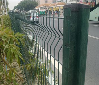 合适的折弯,造就了此种产品独有的美观效果,而且表面采用多种 颜色的浸塑处理,如黄色,绿色,红色,立柱与网片不同颜色的搭配更是令人赏心悦目,同时此种产品多采用带底盘立柱,安装只需打好膨胀螺栓,非常的快捷。